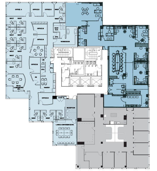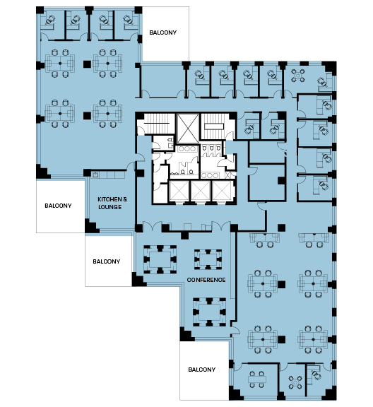 Explore opportunities from full-floor offices to smaller, tailored spec suites. Each floor offers modern finishes and abundant natural light.